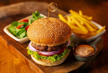 Made with our signature beef patty, lettuce, tomato, pickles, onions