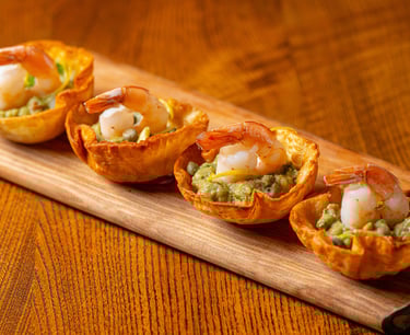 Marinated shrimp, guacamole sauce, fried bread