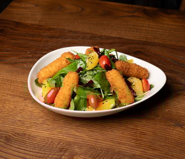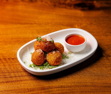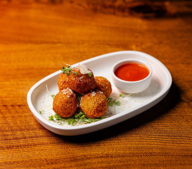 Panko-coated balls, served with cheese dressing and glazed balsamic