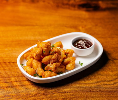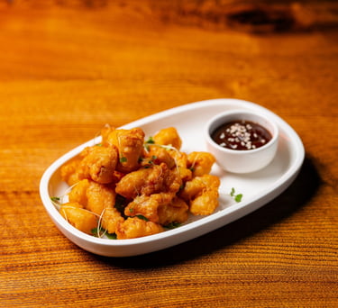 Special marinated chicken in tempura batter with BBQ sauce